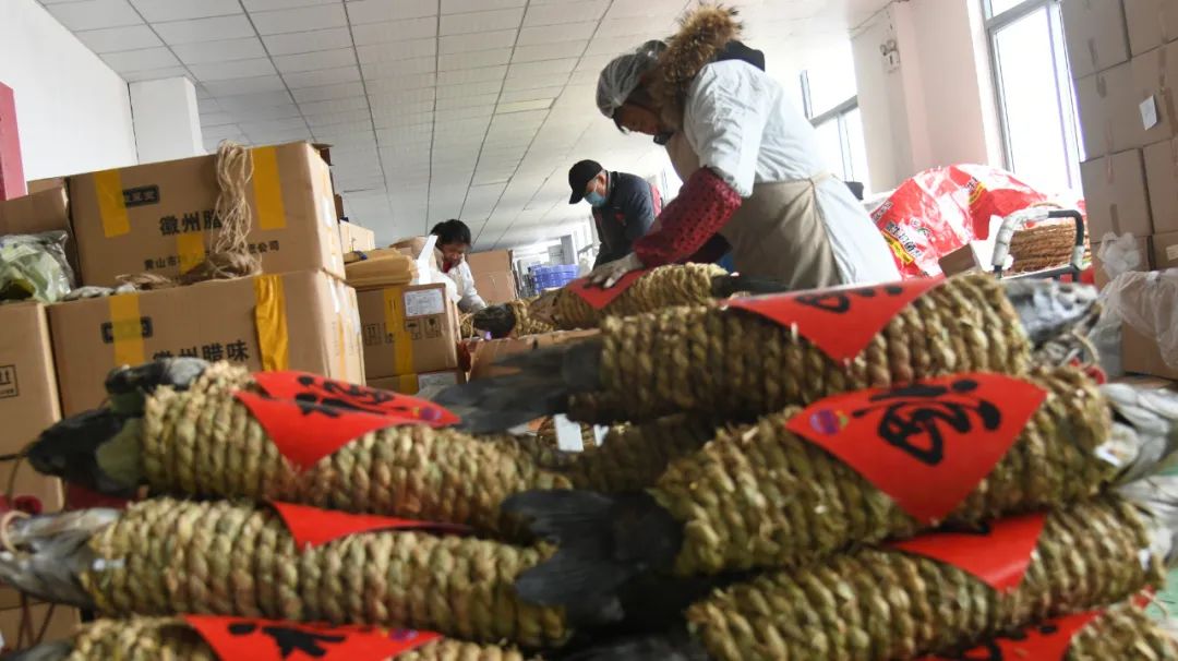 近年来,随着年货的大力推广和发展,洪泽区特色农产品走上全国人民餐桌。销路的打开,不仅吸引了越来越多群众参与到传承传统老手艺的行业当中,更成为当地群众增收致富的良方。