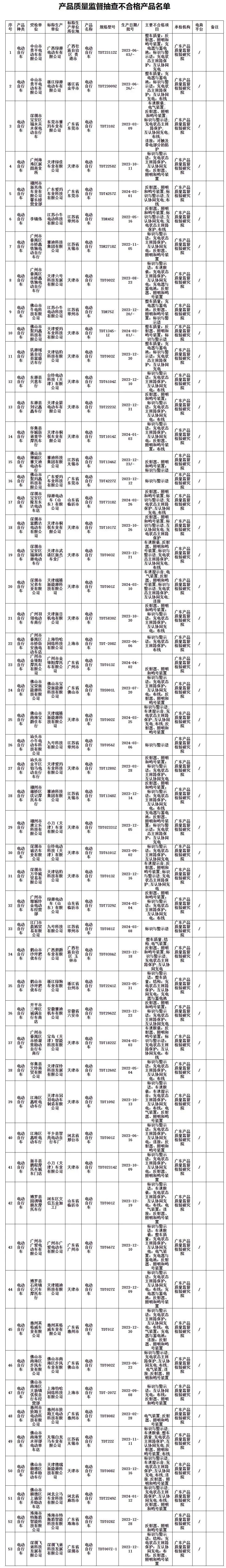本次抽查不合格项目为车速限值、整车质量、结构、车速提示音、反射器、照明和鸣号装置、电气装置、充电器与蓄电池、标识与警示语、充电状态主回路保护、互认协同充电、布线、对触及带电部分的防护和连接等,以上项目经组织专家评审,均属于安全性项目。