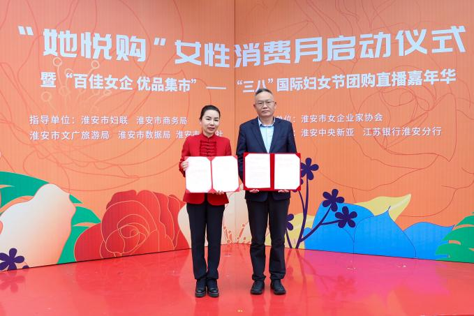 据悉,本次活动由市妇联、市商务局、市文广旅游局、市数据局、市供销社联合指导,市女企业家协会主办,江苏中央新亚百货股份有限公司、江苏银行淮安分行协办。