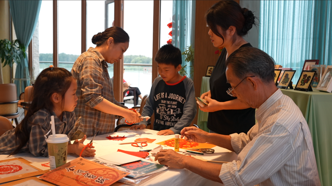 “非遗的活化需要场景,国尧集团正为传统技艺搭建‘活起来’的舞台。”正如非遗保护领域专家所言,集团以创新实践破解传承难题,推动静态非遗向活态体验转型。“双节”期间举办的非遗剪纸沙龙上,金湖剪纸代表性传承人陆功勋携独创彩膜剪纸技艺亲临指导,数十组家庭在动手创作中感受传统美学魅力。陆功勋利用废旧挂历薄膜创作的《国庆献礼》等作品,融合江南剪纸的细腻与北方剪纸的豪放,实现了“技艺展示”到“文化传承”的跨越。