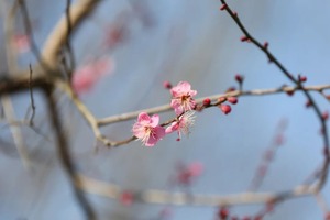古堰之梅,不与桃李争艳,不随群芳趋俗,自有一份孤高与清雅。漫步梅堤,虬枝苍劲,疏花点点,白者似雪,粉者如霞,绿萼含烟,黄香凝露,层层叠叠,绵延成堤。宋人林逋那句“疏影横斜水清浅,暗香浮动月黄昏”,写尽梅花风神,而置于古堰湖畔,更添几分旷远。风过花梢,暗香袭人,恰如王安石所咏:“遥知不是雪,为有暗香来。”不必近观,只凭一缕清芬,便知春已至,梅正开。
