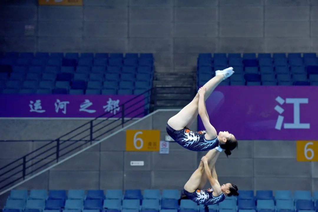 9月10日为期三天的2023年全国蹦床冠军赛在淮安市体育中心体育馆落下帷幕 女子网上个人决赛,资格赛与半决赛都排名第一的天津队选手朱雪莹完成一套难度分为14.8分的成套动作,技术分拿到16.80分,