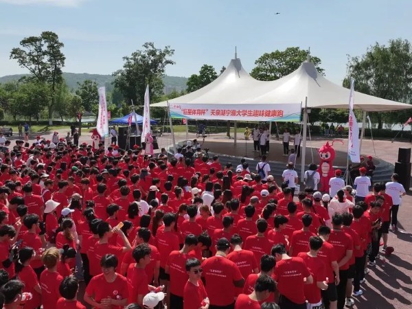 5月19日,来自宁淮两地12所高校近千名大学生相聚盱眙天泉湖畔,共同参加“巨星体育杯”天泉湖宁淮大学生趣味健康跑,用脚步丈量盱眙大地,传递青春活力。