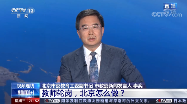据新华社,北京市委教育工委副书记、市教委新闻发言人李奕25日在北京市教育“双减”工作新闻发布会上介绍,在新学期北京将大比例促进干部教师轮岗交流。