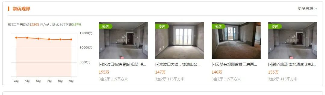 融侨观邸:位于水渡口,9月份二手房均价12895元/m²,环比上月下跌0.67%