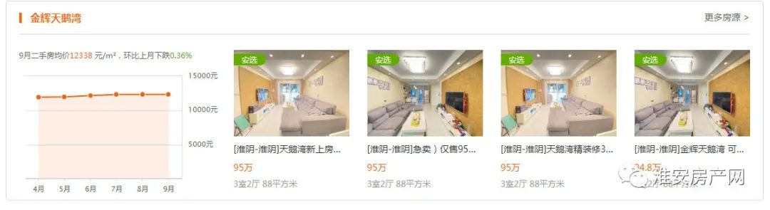 金辉天鹅湾:位于淮阴区,9月份二手房均价12338元/m²,环比上月下跌0.36%