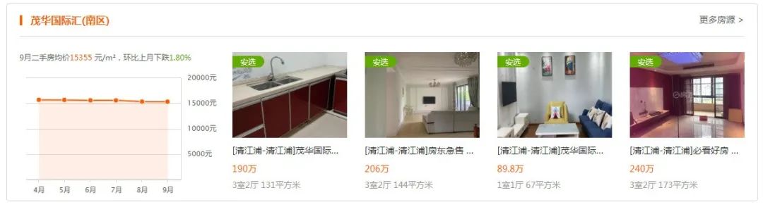 茂华国际汇:位于清江浦,9月份二手房均价15355元/m²,环比上月下跌1.80%