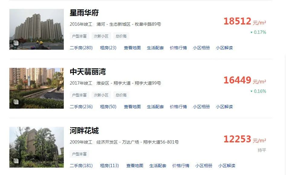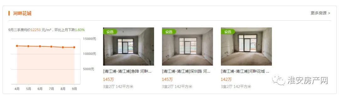 河畔花城:位于清江浦,9月份二手房均价12253元/m²,环比上月下跌1.60%