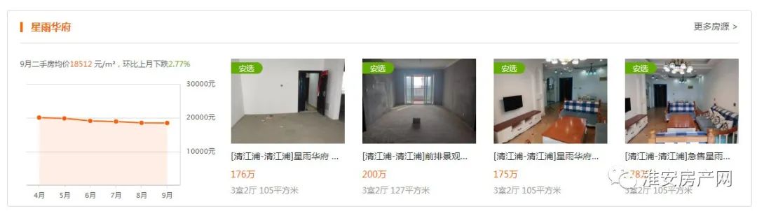 星雨华府:位于清江浦区,9月份二手房均价18512元/m²,环比上月下跌2.77%