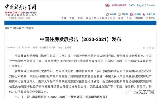 2020年12月22日,社科院发布了《中国住房发展报告(2020-2021)》,明确提出:2021年全国商品房均价将同比整体上涨5%。