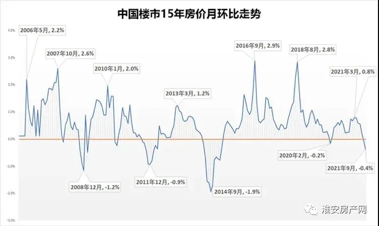 下图是使用70城数据聚合计算出来的中国楼市15年房价月环比走势图。从下图我们可以看到近15年来: