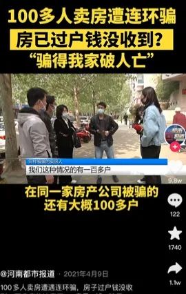 有一个从事房产十年的从业者感到吃惊,100多位业主卖房被坑,上千万的尾款被中介公司骗走。