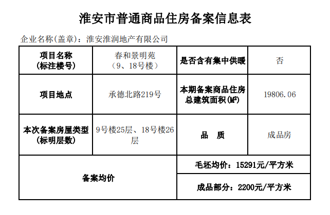 1、清江浦区中海国联淮上景明:最新备案价曝光,9、18号楼,25-26层,成品交付,均价17491元/㎡,和前期同类型产品价格比,涨了300元/㎡。 2、大学城淮安置地广场·悦玺台:最新备案价曝光,3号楼(26层),成品均价12570元/㎡。