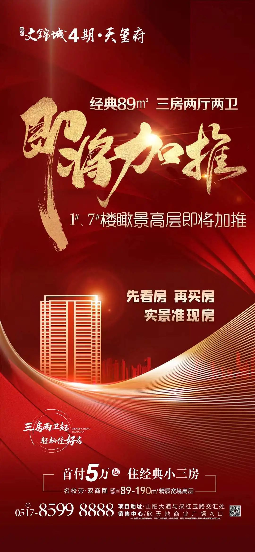 最新动态:项目目前主力在售5、6号楼成品高层,建筑面积89-139㎡,备案均价12428元/㎡。另外,计划本月加推1、7#毛坯高层,共约350套房源,户型建筑面积约89㎡-138㎡,价格待定。