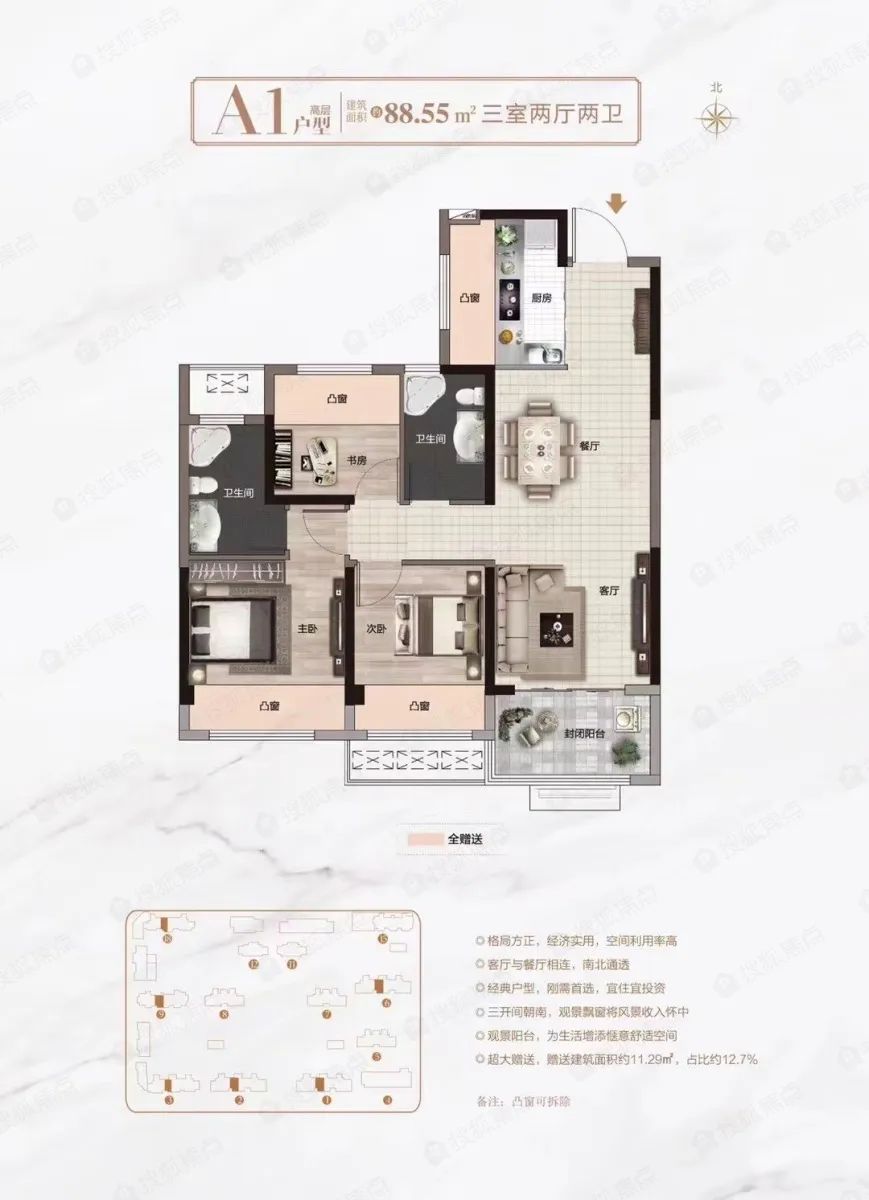 88.55㎡三房两厅两卫↓↓