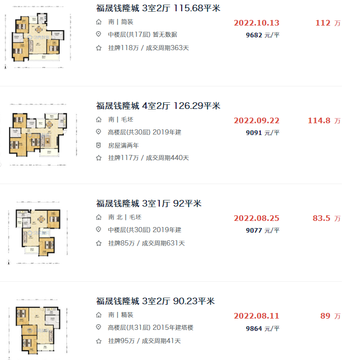 今年钱隆城的成交价均保持在9000-10000元/㎡,这已经是该小区很普遍的价位。