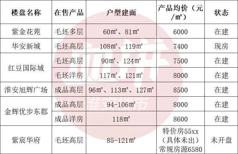 据小编统计,目前板块内在售楼盘主要有紫金花苑、华安新城、红豆国际城、旭辉广场和金辉优步东郡,此外还有等待开盘的紫宸华府。