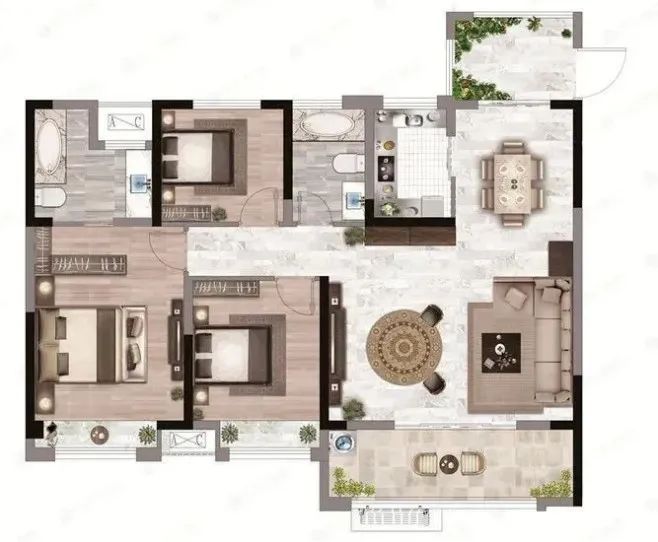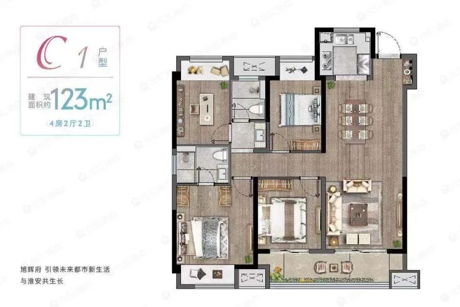 如红豆国际城2期建面约124㎡的纯改善户型,户型布局为三房+餐客厅一体化。三面朝南,采光很好,一家人居住绰绰有余。
