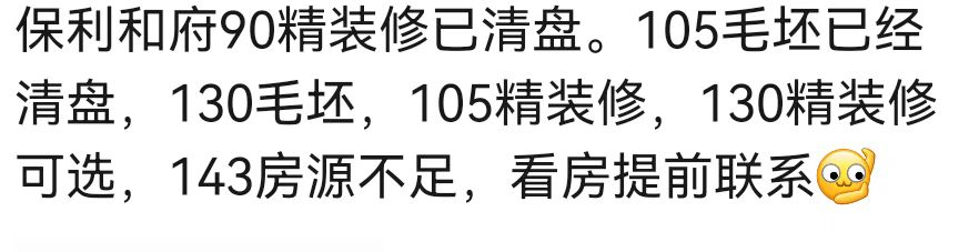 由于持续高流速,保利国联·和府不少产品都开始清盘。