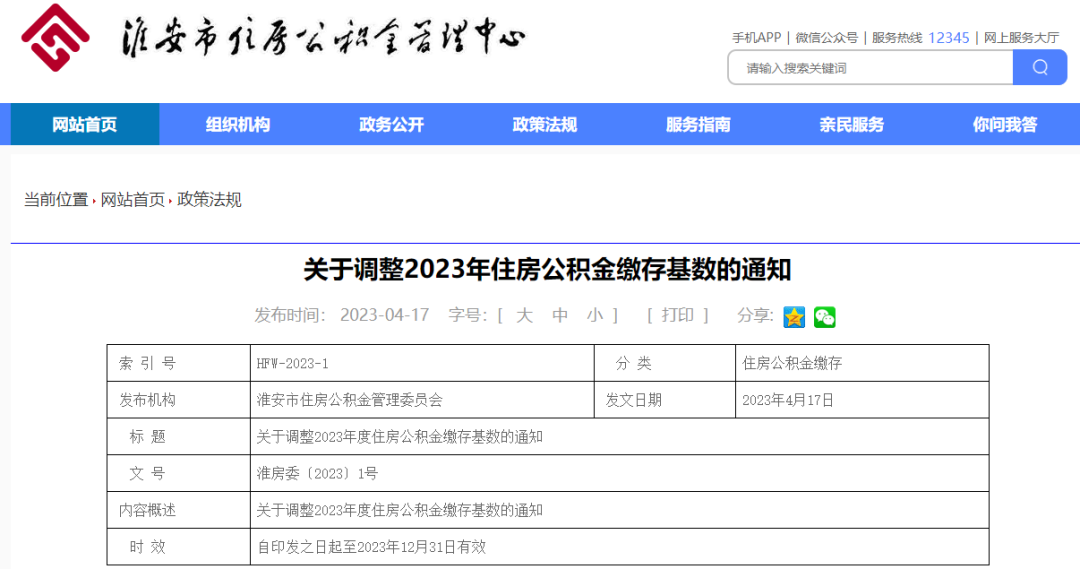 注意!淮安住房公积金缴存基数调整!