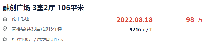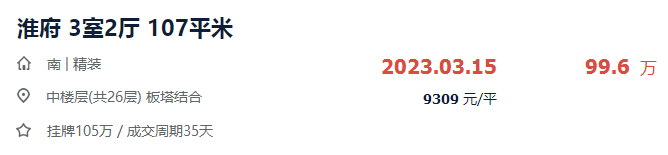 二手房挂牌:挂牌量25套,小区均价13346元/㎡,近30天带看8次;据贝壳找房数据,目前水沐明悦府已成交5套二手房,其中:单价最高的1套为292㎡别墅,成交总价490万,单价16781元/㎡。单价最低的1套为133㎡高层,成交总价129万,单价9700元/㎡。涨幅:最高成交单价为16781元/㎡,按3层毛坯住宅13618元/㎡计算,水沐明悦府交付大半年,最高涨幅达到23.2%。降幅:最低成交单价为9700元/㎡,按高层10500元/㎡计算,水沐明悦府交付大半年,最高降幅达到7.6%。以上就是淮安主城近两年交付的次新小区成交情况,几家欢喜几家愁,这些房源成交单价迥异,有房源涨幅惊人,达到46.1%;也有房源降价促成交,亏本卖出。