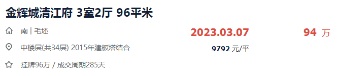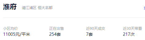 二手房挂牌:挂牌量254套,小区均价11005元/㎡,近90天成交7套房;据贝壳找房数据,目前淮府已成交10套二手房,其中:单价最高的1套为145.5㎡小高层,成交总价151.6万,单价10420元/㎡。单价最低的1套为107㎡高层,成交总价99.6万,单价9309元/㎡。涨幅:最高成交单价为1.04万/㎡,按新房8600元/㎡计算,淮府交付半年,最高涨幅达到21.2%。二手房挂牌:挂牌量496套,小区均价9597元/㎡,近90天成交74套房;据贝壳找房数据,目前金辉城清江府已成交173套二手房,其中:近两个月成交数据中,单价最高的1套为96㎡高层,成交总价94万,单价9792元/㎡。近两个月成交数据中,单价最低的1套为127㎡高层,成交总价105万,单价8268元/㎡。涨幅:近两个月最高成交单价为9792元/㎡,按新房6700元/㎡计算,金辉城·清江府交付超1年,最高涨幅达到46.1%。开盘均价:高层10500元/㎡、洋房11686元/㎡、3层毛坯住宅13618元/㎡