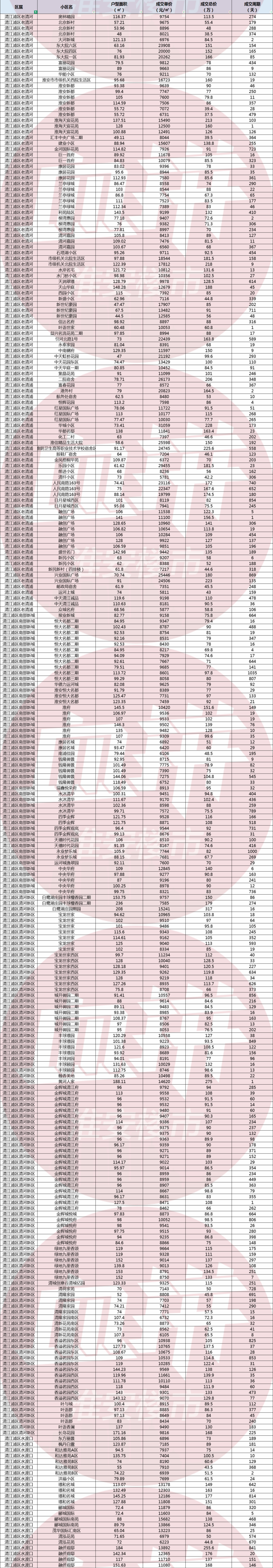 其中,成交单价最高的小区是华城小区,成交单价31059元/㎡,成交面积73.41㎡,成交总价228万元。