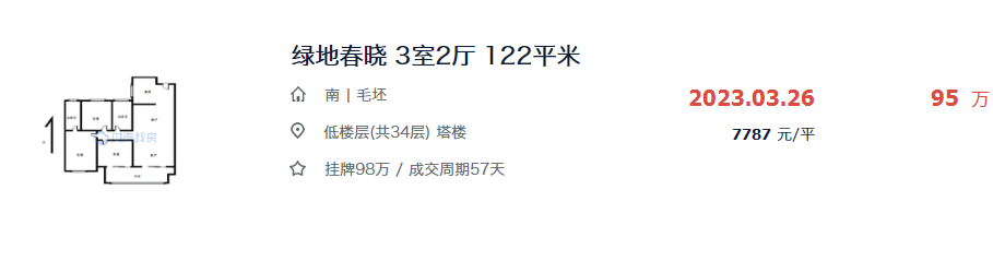 大学城的绿地春晓真实成交价以及低至了7787元/㎡,房东亏本卖房。