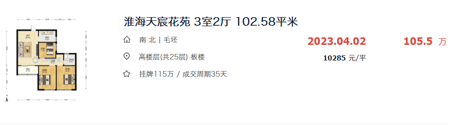 同样是年初刚刚交付的淮海天宸小区,目前还是次新房品质相对较高,但是从小区的二手房成交价来看,房东抛售的不在少数…