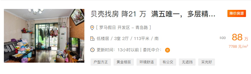 在上面也说过,二手房挂牌量暴涨,基数庞大,买房人挑选的余地很大。所以房东要想出手只能降价,降到对比下一个价位其他房源有优势的时候,简单来说就是降出性价比,才能卖出去。