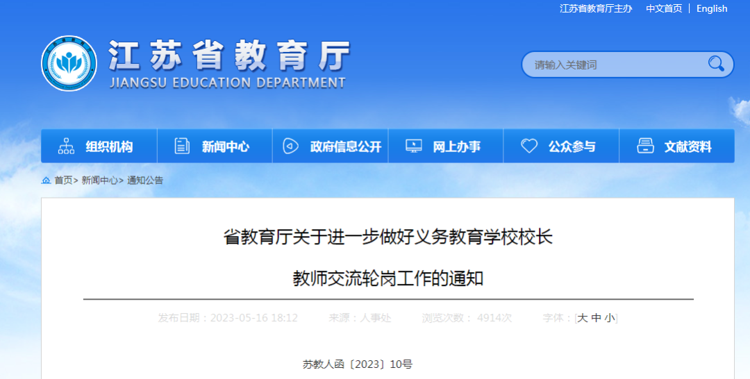近日,江苏省教育厅发布通知,强势推进全省义务教育教师交流轮岗。