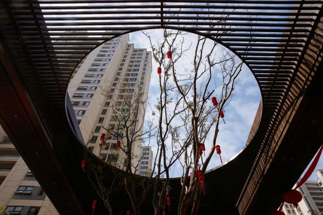社区围绕“园林式”主题打造了五重景观,其中全冠移植大苗有约2000棵植被,业主下楼,就可以悠游于一整座花园。