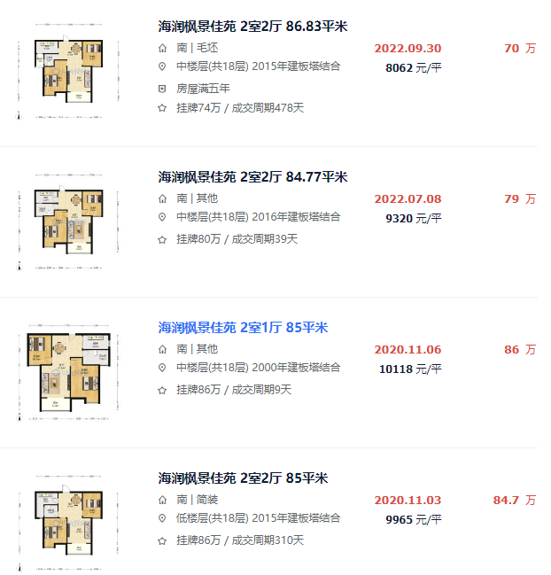 小区之前成交过的85㎡左右的房源也很多,而且成交单价都不低,最高的成交单价甚至超过了万元。