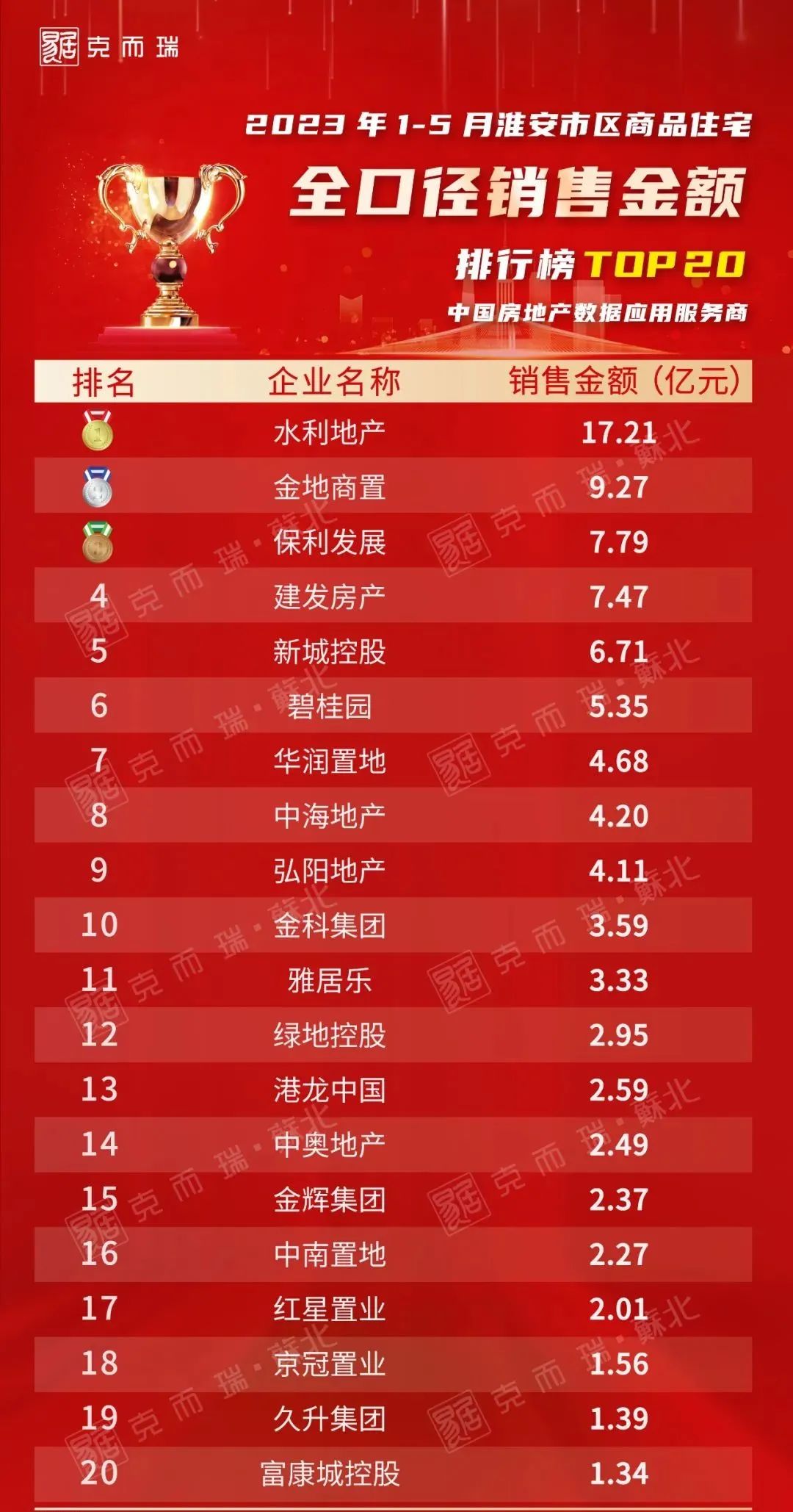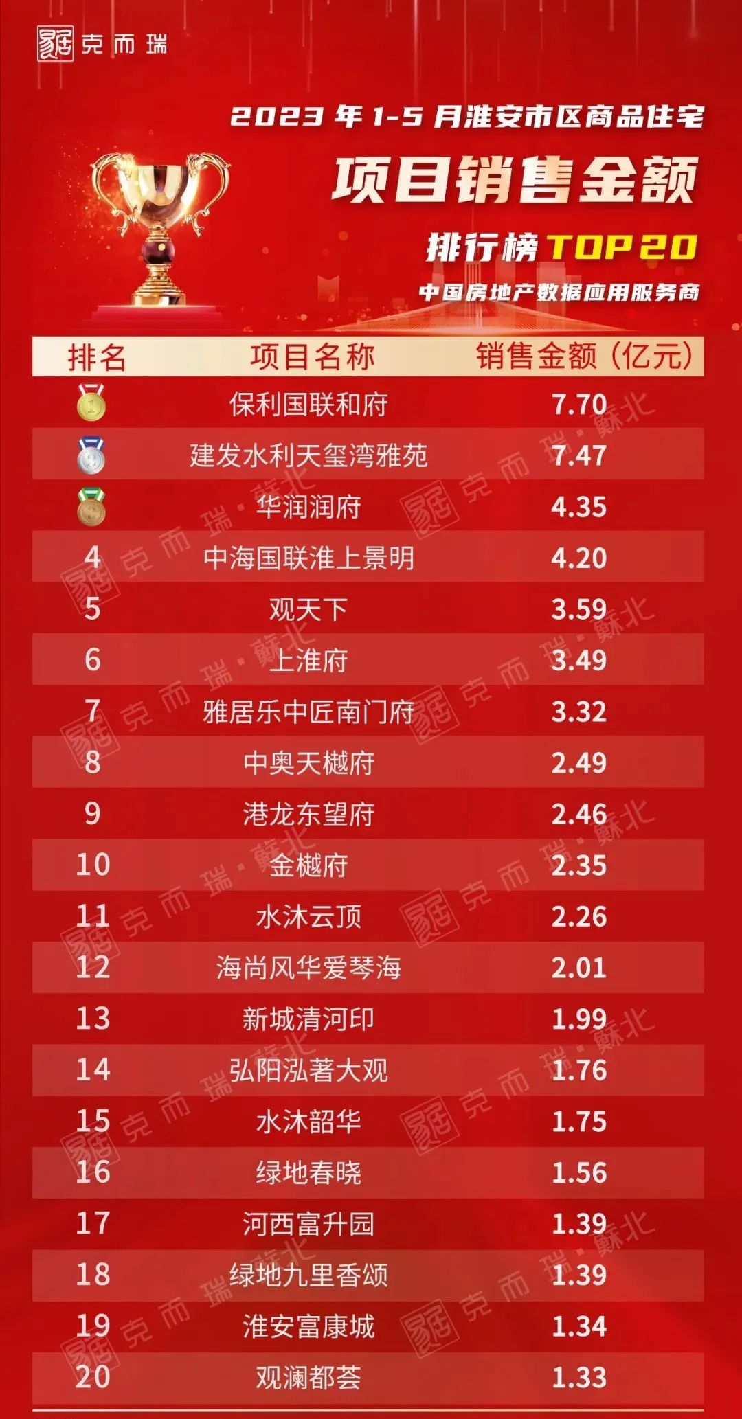 淮安1-5月新房数据曝光,保利国联和府、建发水利天玺湾雅苑和华润润府包揽前三名!