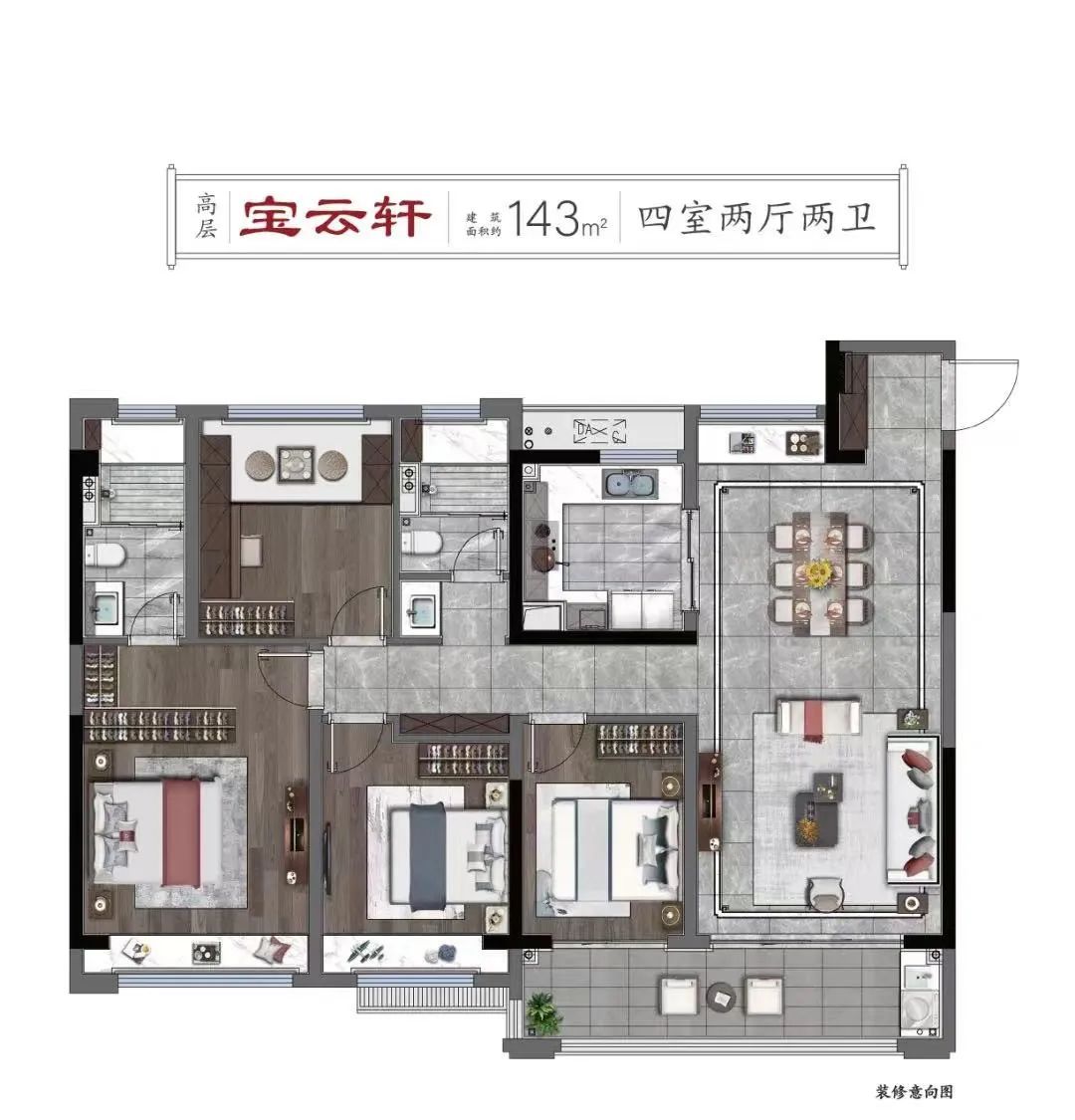 项目仅剩少量房源在售,户型建筑面积约105-130㎡,精装交付。