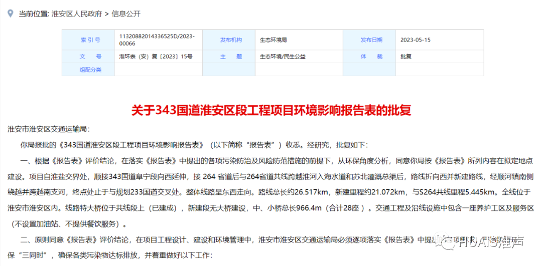 2、淮安将新建一条国道,总投资约16.43亿元!