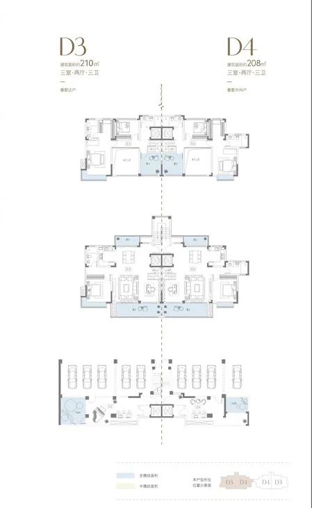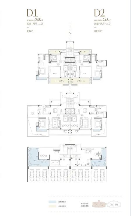 大家发现没有,在户型图中,项目就已经标注了每套房源需要购买车位的数量,最高的建面约248㎡的下叠户型有6个车位,最低的建面约208㎡的下叠户型有4个车位,而这些车位都要买房人买单…