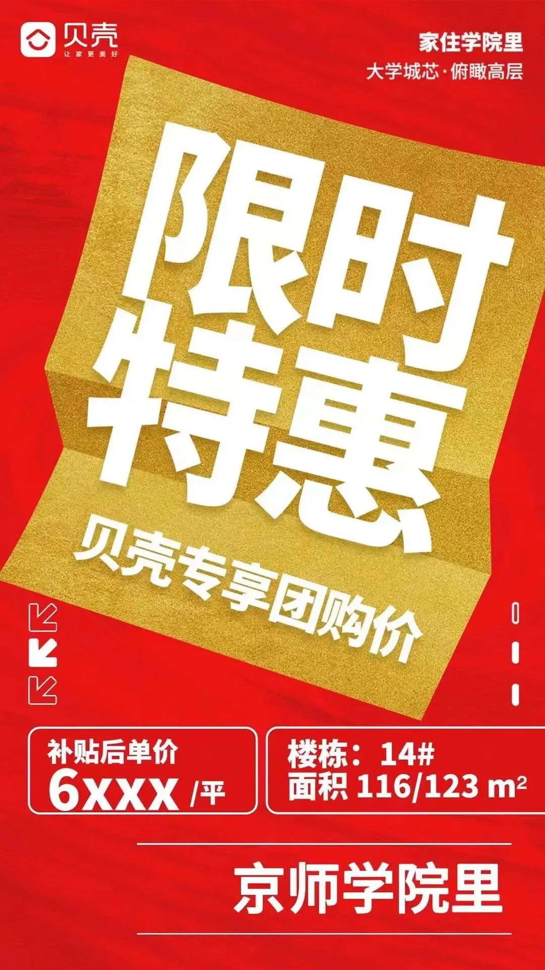 直到今年4月份,京师学院里通过贝壳渠道推出了劲爆的特价房源,14号楼毛坯高层!最低单价仅6200元/㎡起,成交均价只有约6900元/㎡。