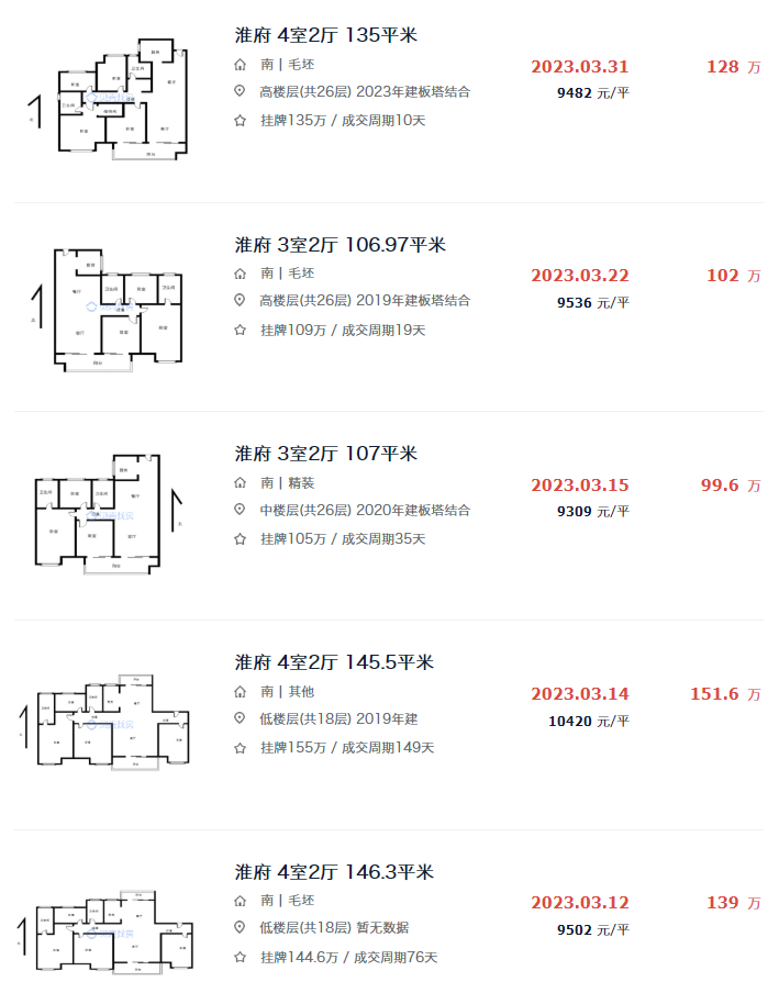 比如今年新交付的淮府,近日就出现了一套历史最低的成交房源,成交单价只有8468元/㎡,比正常的成交价低约1000元/㎡。
