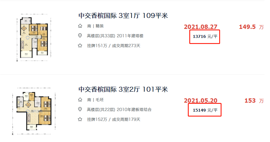 还有位于生态新城中交香滨国际,近日也出现了两套成交价偏低的房源。