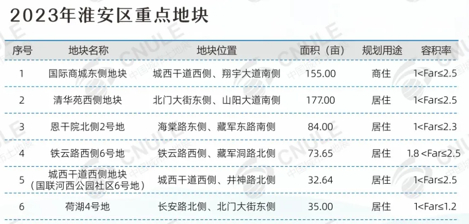 今年淮安区一共推介了6宗地块,其中5宗纯居住用地,只有1宗商住用地,总面积约557.29亩。