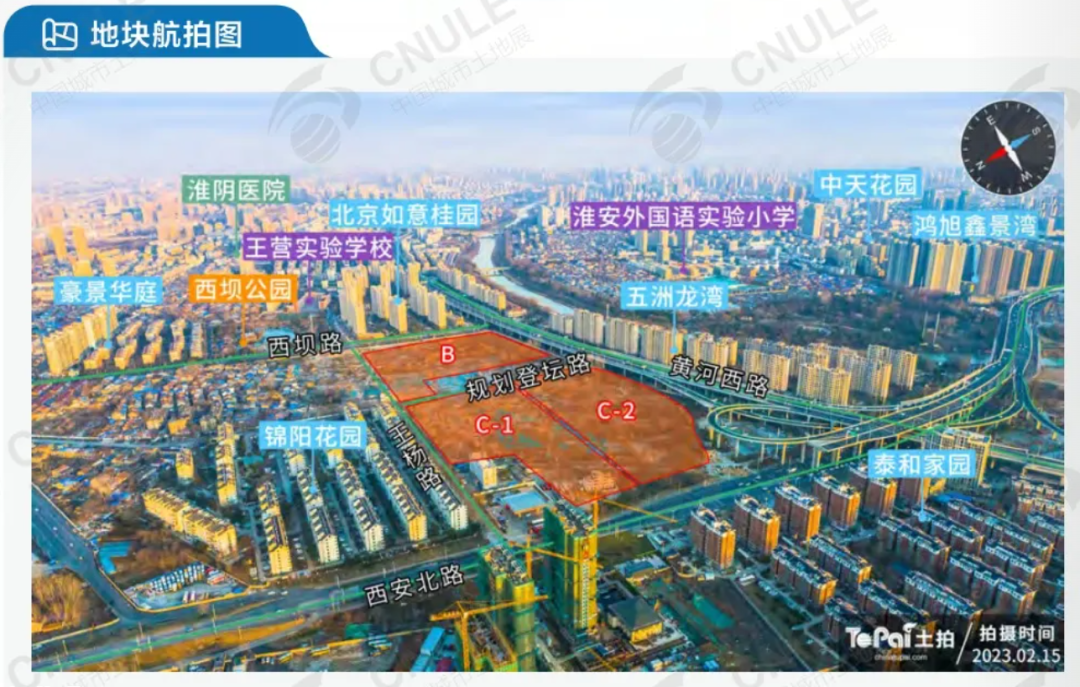 C地块位于黄河西路北侧、登坛路西侧,占地106.4亩,商住用地,容积率1≤Far≤2.5。