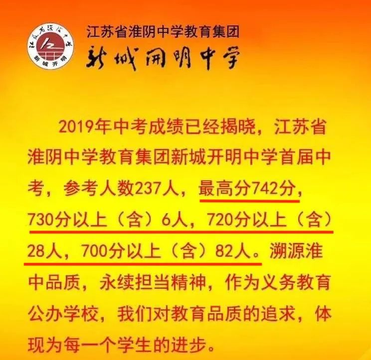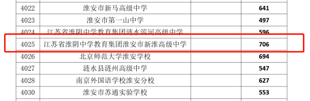 而从今年公布的淮安普通高中录取分数线看,新淮高级中学的分数线为706,是仅次于淮阴中学的存在。足可见该校的“含金量”。