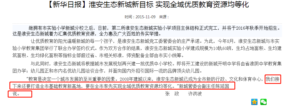 而清一色的“淮中、开明系”,在整个淮安教育资源配套中的分量十分明显。