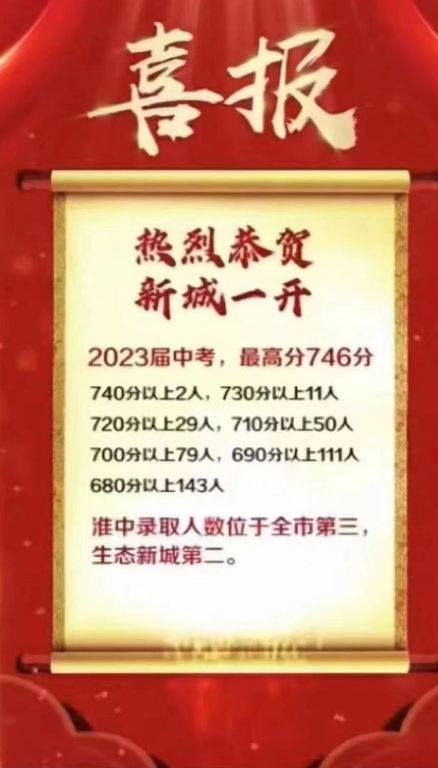 甚至还有网友贴出了喜报,称该校今年淮中录取人数全市第三,最高分高达746分,其中700分以上79人,680分以上有143人。