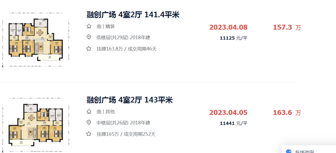 笔者在贝壳找房网站找到了一套户型面积一模一样的房源,该房源的成交价格为157.3万元,成交单价11125元/㎡。