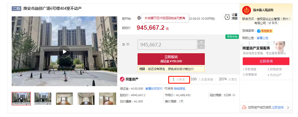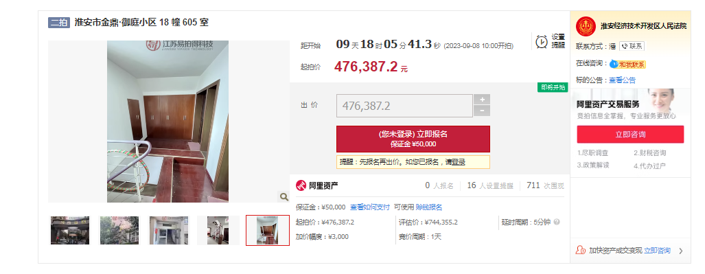 清浦老城核心区的次新小区,还是品牌房企开发的成品房,起拍价格只有6字头,单从价格上看还是十分值得关注的,因此目前该房源已有人报名参拍。