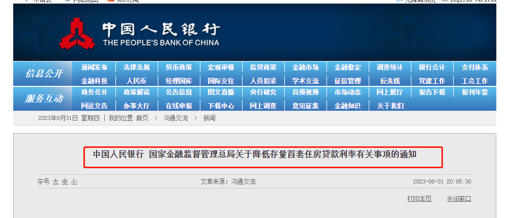 中国人民银行 国家金融监督管理总局关于降低存量首套住房贷款利率有关事项的通知