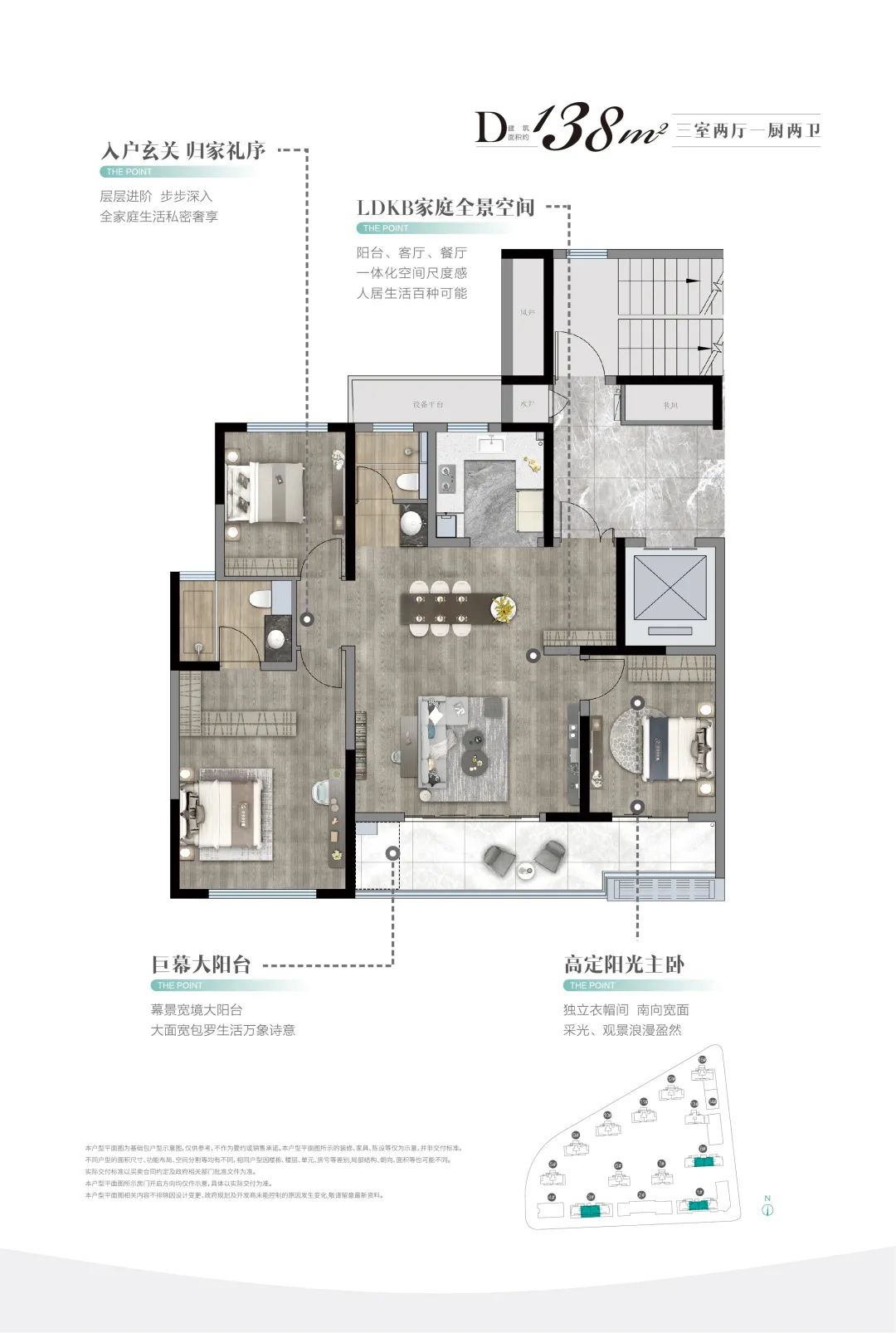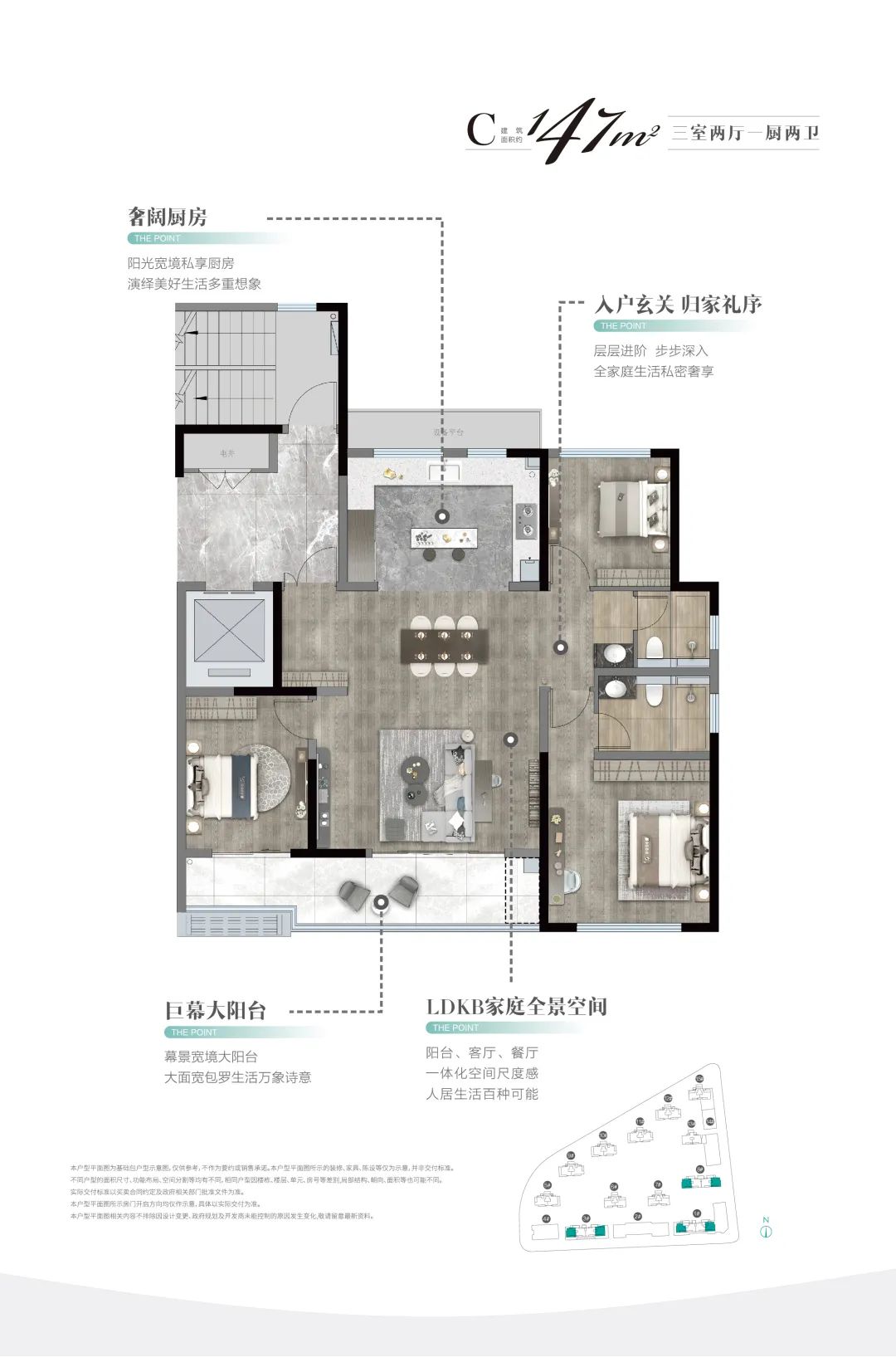 两种户型均为三房两卫格局,都是改善客群一步到位的选择。