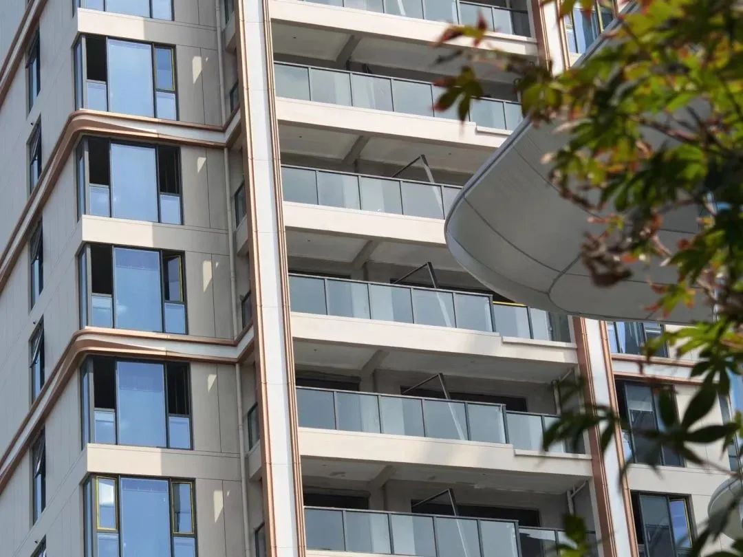 项目汲取扎哈·哈迪德弧线灵感,以轻薄的线条勾勒建筑的轮廓,并通过金属铝板、大面积落地玻璃窗与真石漆的有机组合,打造现代风格建筑立面,在整个板块不仅辨识度高,而且品质感十足。